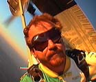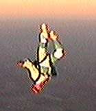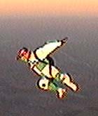 William approaches the headup orientation. Notice that he maintains eye contact with his partner (camera flyer) and horizon in front of him. His left arm is extended ready to catch air for stopping in a headup orientation. |