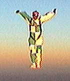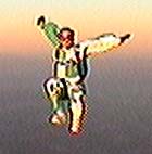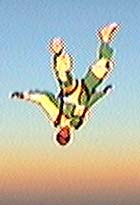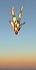 From a basic headup flying stance (not shown), sometimes it's necessary to accelerate the fallrate first to help prevent from floating during the transition. William accomplishes this by assuming a standing position just prior to initiating his cartwheel. This technique is more crucial for light weight freeflyers. |